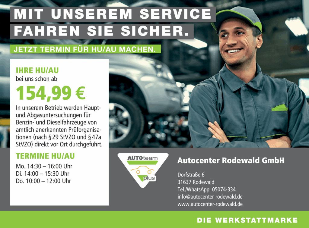 HU & AU direkt bei uns im Haus – an drei Tagen pro Woche